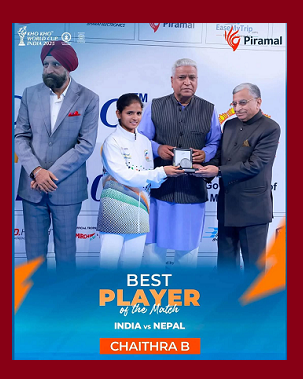 CHAITHRA B, Best Player awardee of Karnataka from Kurubur, T Narsipura Tq., Mysore District represented Indian Women team in the 1st Kho Kho World Cup 2025 held at Delhi from 13th to 19th January 2025